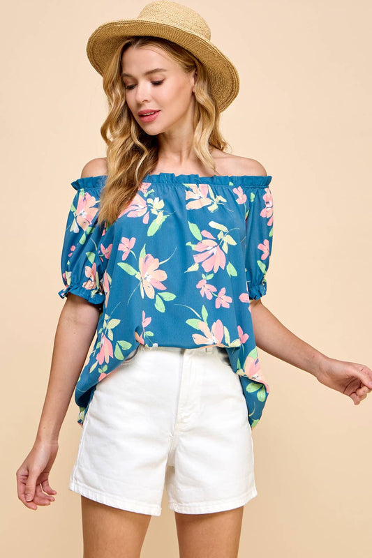 Regular price $44.00Regular priceUnit price / perSale price $44.00This stylish floral printed top features a vibrant, feminine design with a flattering fit. The optional off-shoulder style adds versatility, allowing you to switch between a casual or chic look. It’s perfect for any season. Pair it with jeans or s... -