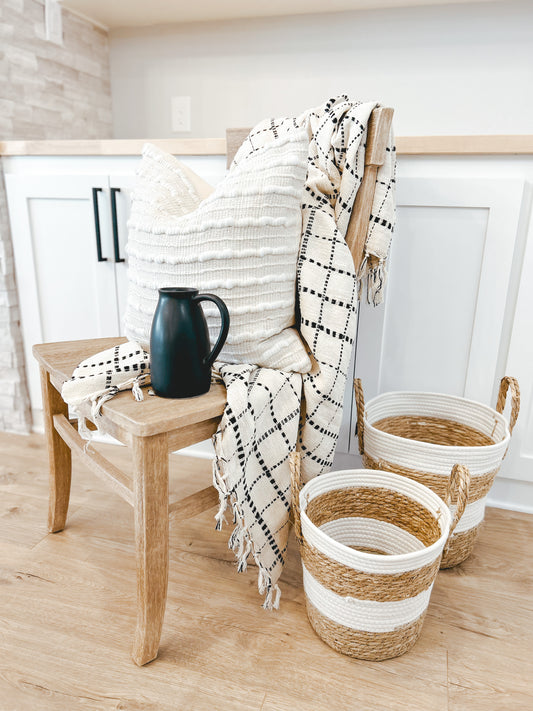 Regular price $48.00Regular priceUnit price / perSale price $48.00This Woven Cotton Lumbar Pillow with Embroidery has a variety of blues and goes great in a Coastal or Boho-designed home. Place this on your sofa with other pillows or let it shine front and center on your bed. This pairs great with our Navy Pier... -