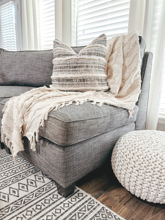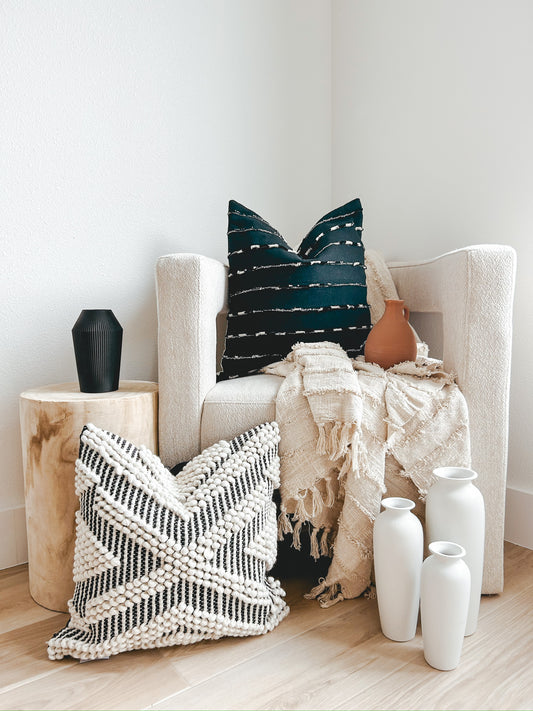 Regular price $46.00Regular priceUnit price / perSale price $46.00The Mellow throw pillow brings modern Boho and Zen vibes to every room. This throw is a go to staple for those looking to add a laid-back earthy vibe. DETAILS: Note: Only cover is included, inserts are sold separately. Size: 20X20 Insert Recomme... -