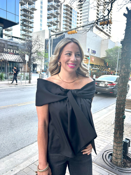 Regular price $54.00Regular priceUnit price / perSale price $54.00Turn heads in this stunning black off-the-shoulder top, crafted from a luxe woven fabric for a chic, elevated look. This fully lined piece features an elegant bow accent that adds a touch of sophistication to any outfit. Perfect for date nights or... -
