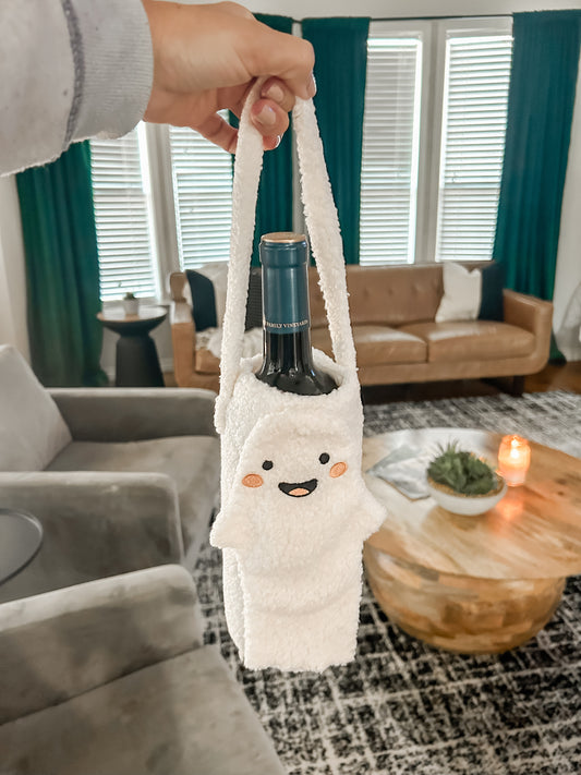 Regular price $10.00Regular priceUnit price / perSale price $10.00Get into the spooky spirit with our Boo Wine Bag! Crafted from soft and cozy Sherpa, this charming ghost design ensures your wine bottles stay snug and stylish during transport. Whether heading to a cozy gathering or a Halloween party, this deligh... -