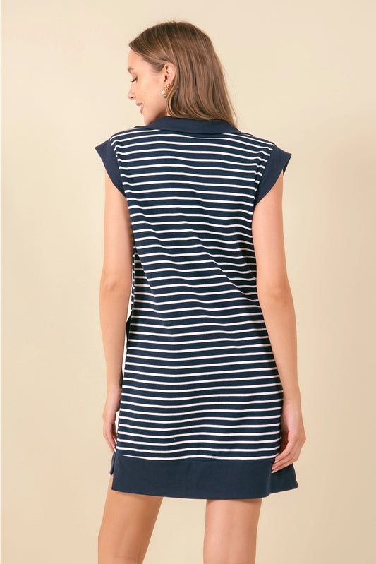 Regular price $44.00Regular priceUnit price / perSale price $44.00This Striped French Terry Dress is here—and it’s a must! ✔️ Chic horizontal stripes✔️ Silver half-zip neckline✔️ Ribbed trim + cap sleeves✔️ Side pockets (yes, please!)✔️ Comfy cotton blend It’s a perfect transitional piece for running errands, ga... -