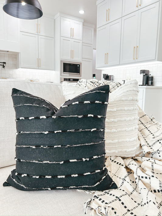 Regular price $42.00Regular priceUnit price / perSale price $42.00This beautiful olive green colored pillow cover features a cream stripe running throughout. This pillow cover comes with the patterned front and a complementary natural cotton fabric across the back. This subtle green is sure to add a nice modern ... -