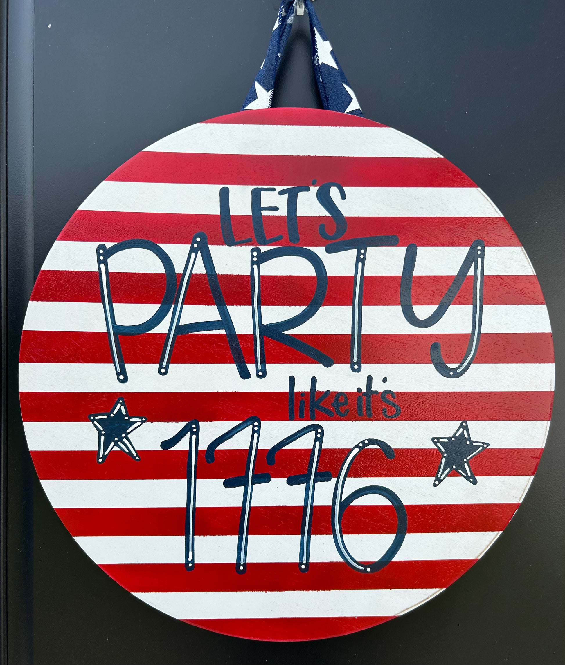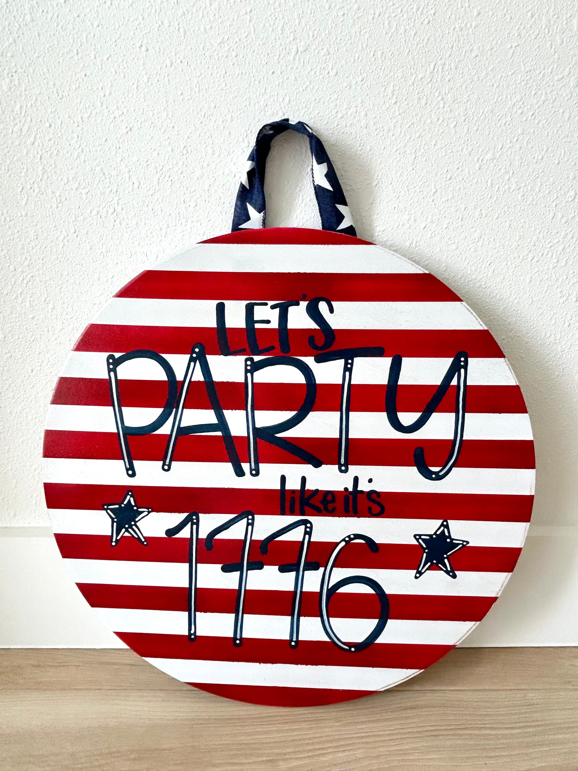 What better way to celebrate America than with a cute modern door sign? A woman-owned small business artist creates each sign by hand. Every sign is hand-painted one letter at a time without stencils or vinyl. Each sign is a one-of-a-kind. Let's Party Like Its 1776!