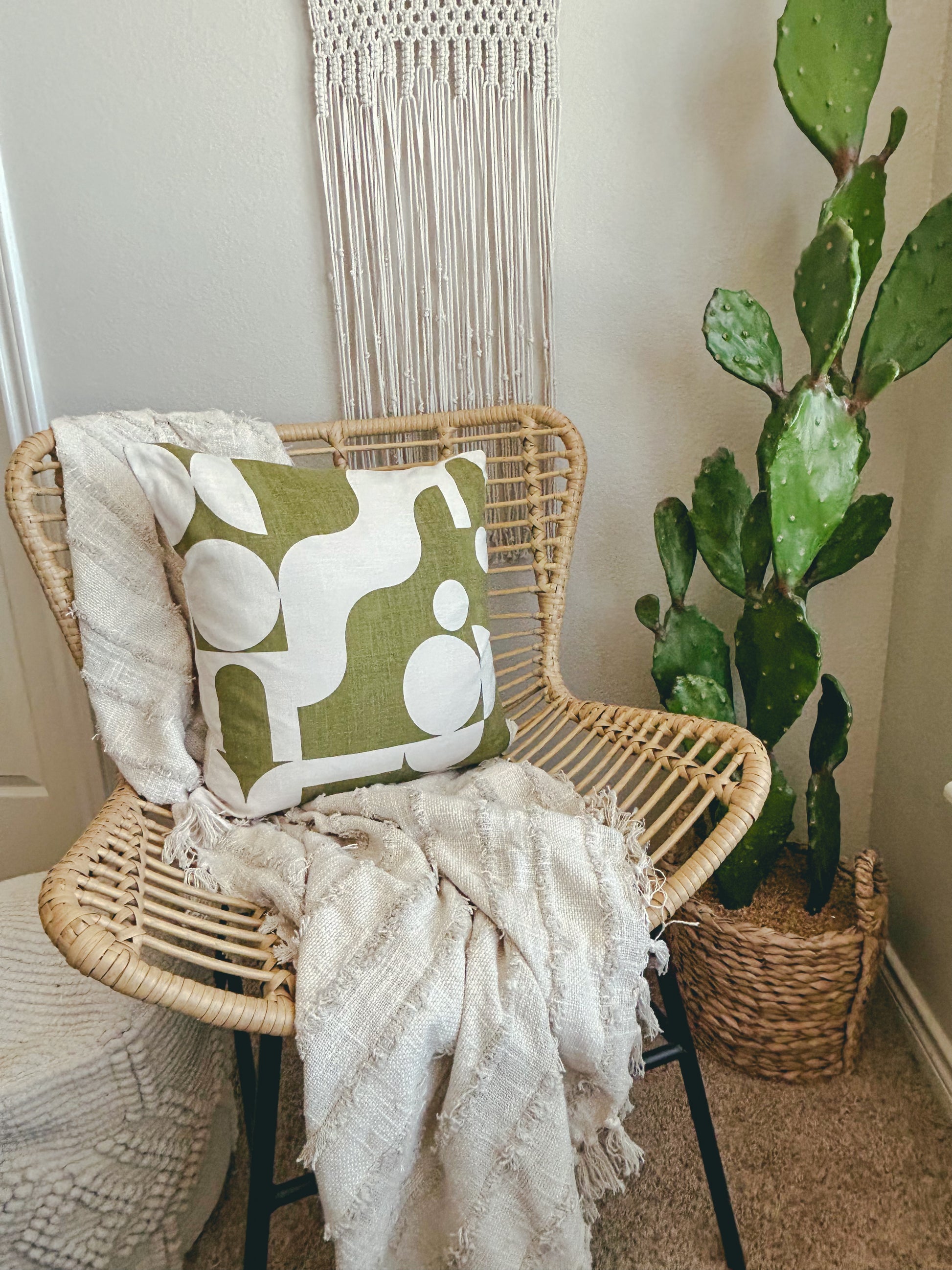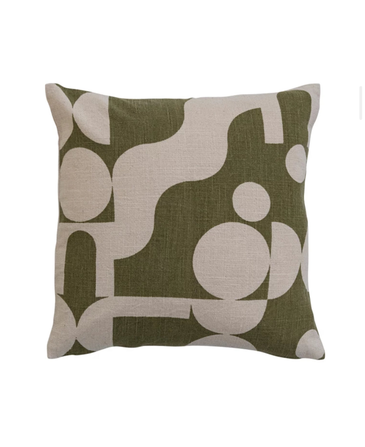 This 18" Square Cotton Slub Printed Pillow with Abstract Design, Green & Natural is an awesome piece to add personality to any home. Our Abstract Green Geo adds a fun and artistic design to any space.
