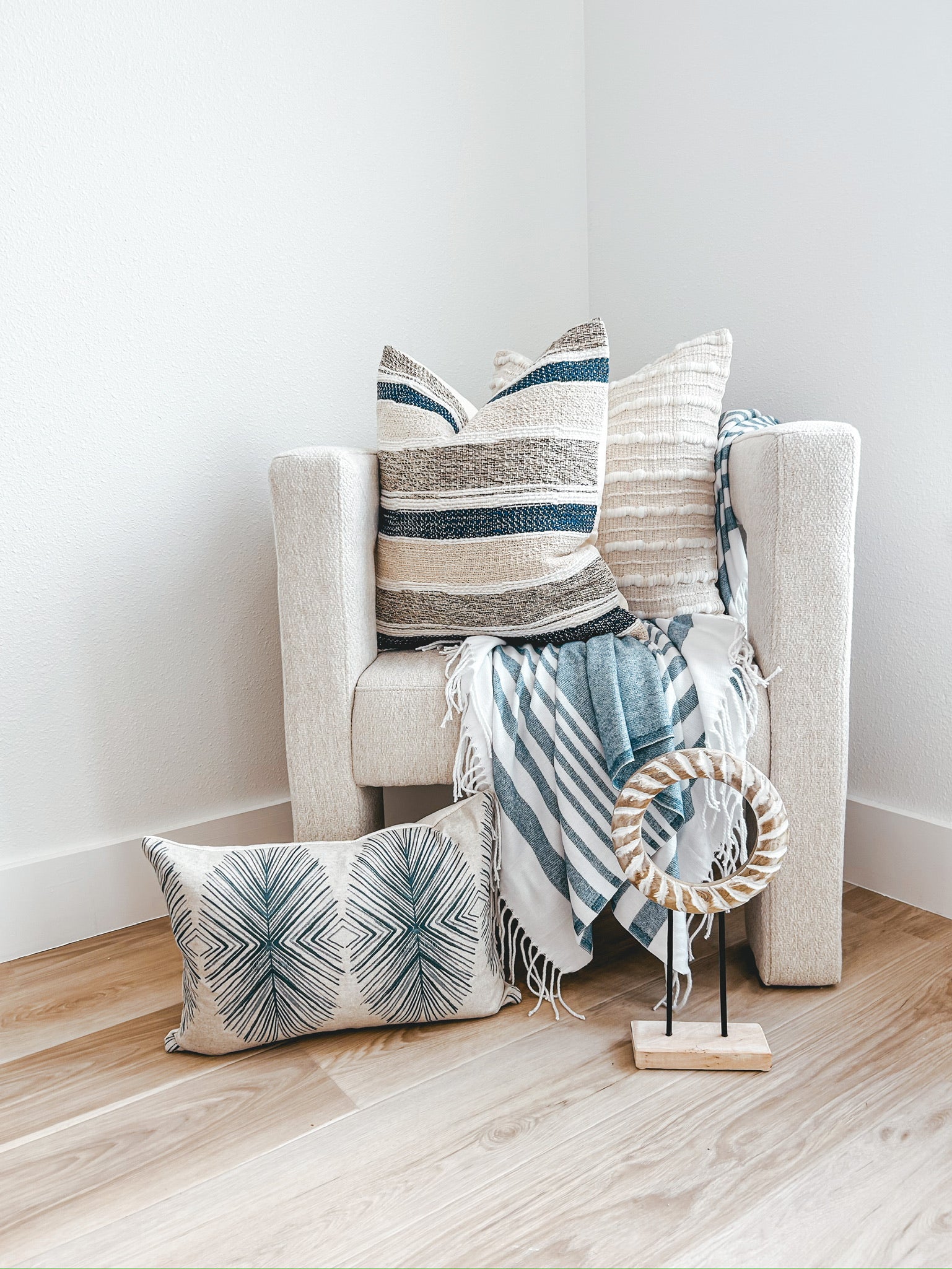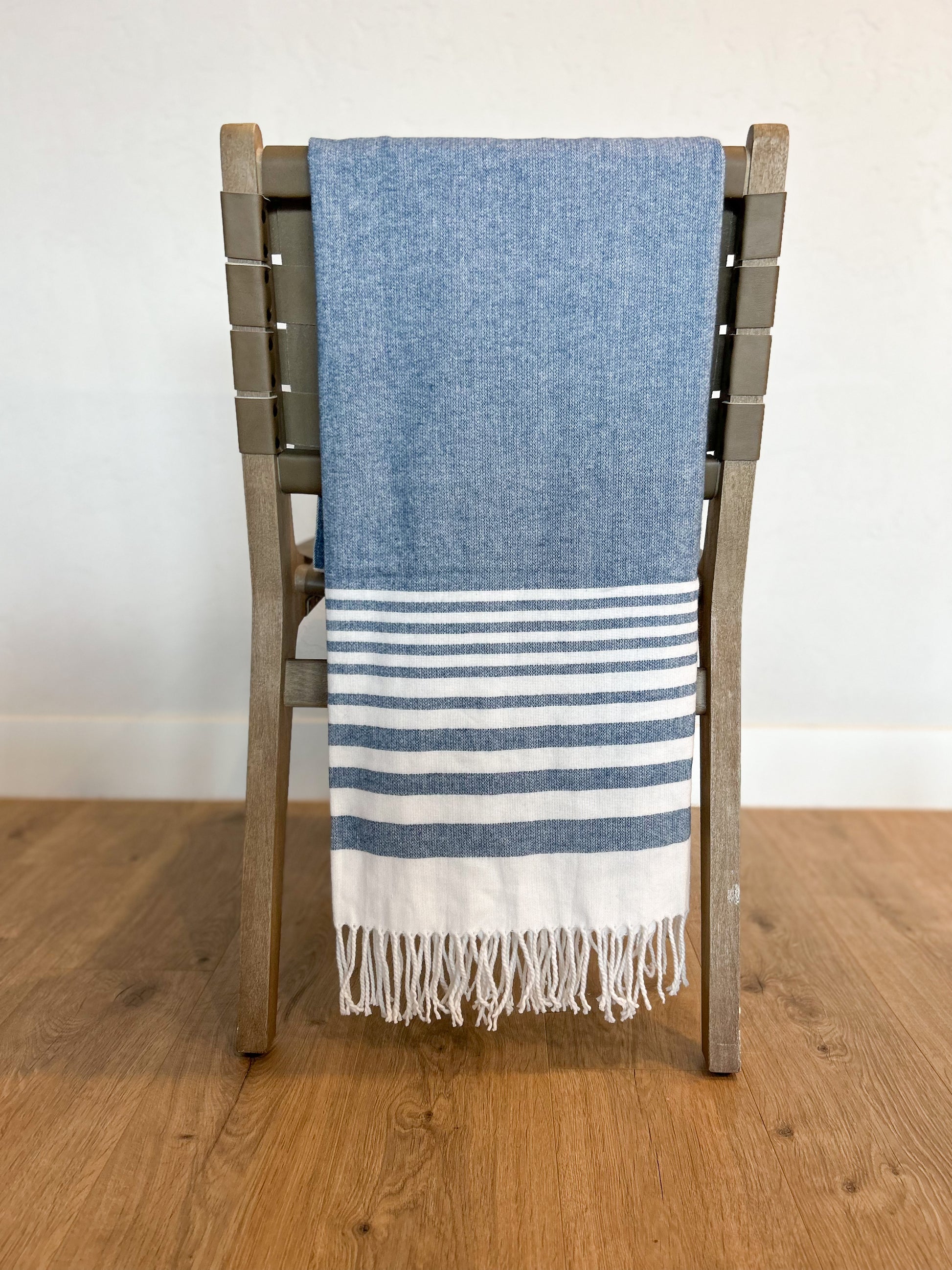 This stunning Coastal Striped Throw Blanket is made with a quality cotton blend, adding softness and comfort to your décor. The design features multiple stripes of different sizes, which bring a textured note. The tasseled edges are the perfect finishing touch, adding to the texture. The Hampton will bring a relaxing coastal vibe to your favorite space.