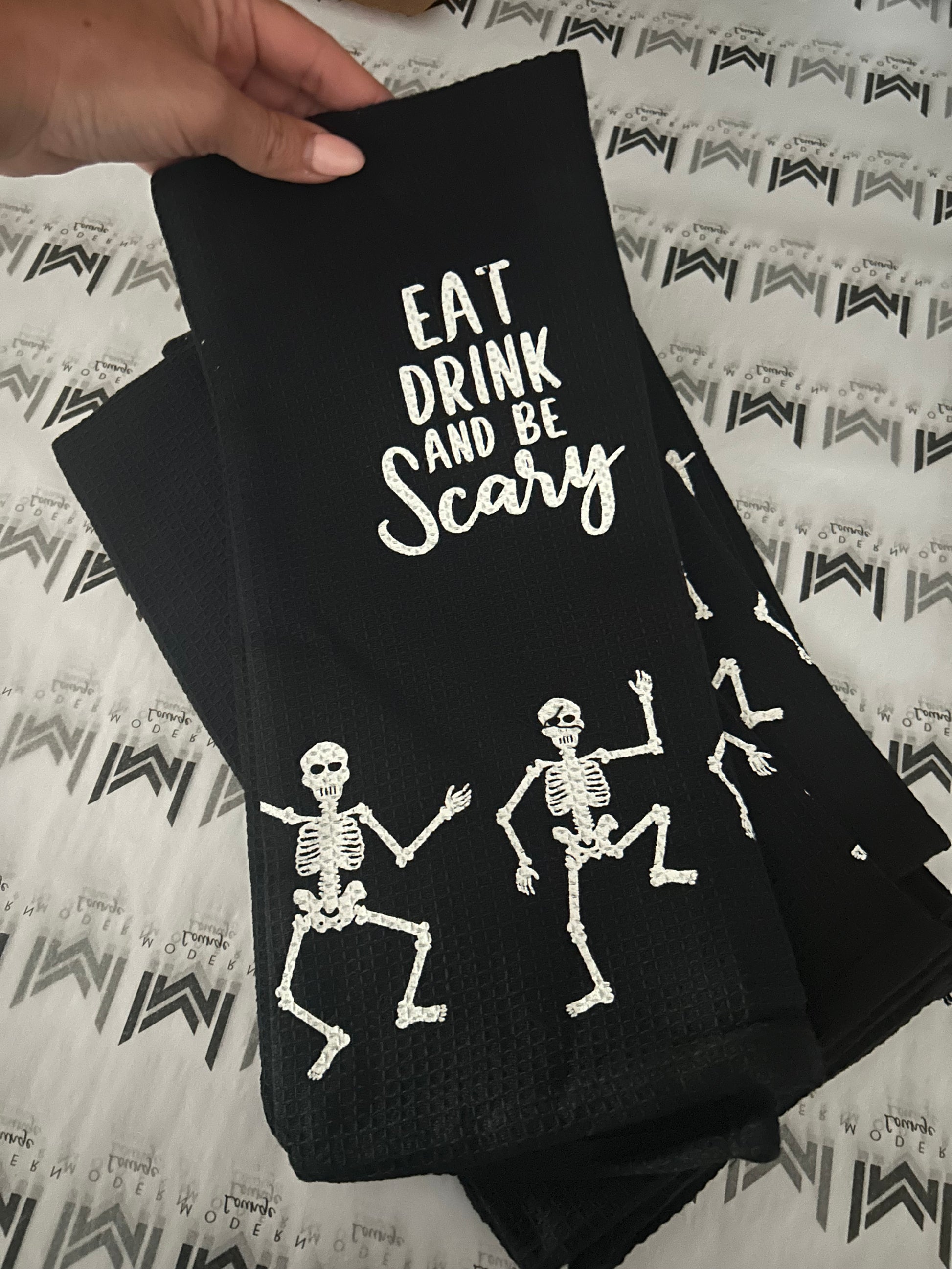 Get into the spooky spirit with this Skeleton Kitchen Towel. Adorned with a fun and ghoulish skeleton design, it's the perfect addition to your Halloween festivities. Whether drying dishes or adding a touch of eerie charm to your kitchen, this towel sets the mood for a frightful feast.